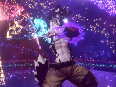 One example with add ons like Bayonetta's guns from her game, as well as particles and additional piercings etc etc
